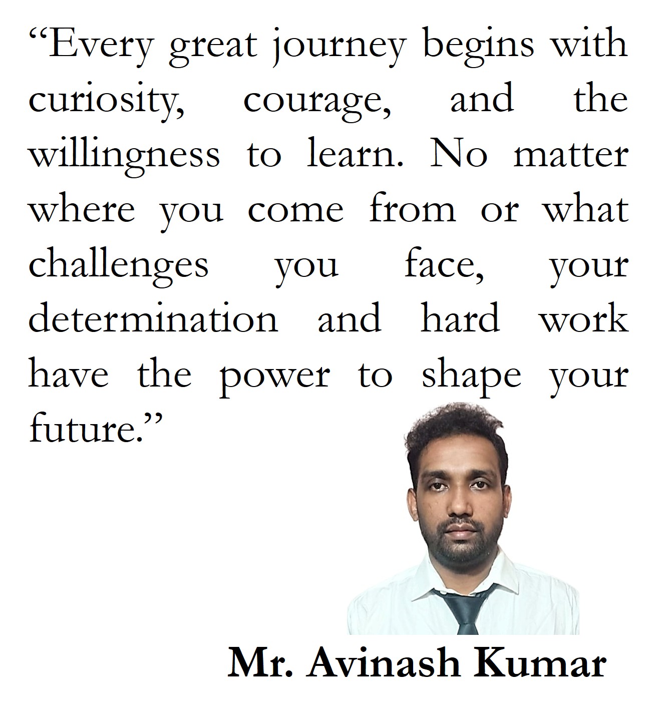 Mr. Avinash Kumar is the Founder and Chief Executive Officer of BioCompScience (BCS). He completed his primary and secondary education at Jawahar Navodaya Vidyalaya, studying from Class VI to Class XII. During his academic journey, he was awarded the prestigious Dakshana Scholarship in Class X for preparation for the Joint Entrance Examination (JEE). He also received the opportunity to study under the Super 30 program, guided by Mr. Anand Kumar. Mr. Kumar earned his Bachelor’s degree in Mechanical Engineering from IIT Mandi and went on to complete his Master of Science in Mechanical Engineering from IIT Madras. After completing his education, he worked in industry, where he gained hands-on experience in solving real-world, challenging problems. From an early age, Mr. Kumar has been deeply motivated to contribute to the nation by addressing complex and meaningful challenges. Driven by this vision, he founded BioCompScience (BCS), which stands for Biological Computation Science. The organization operates in two key domains: one focused on the education sector, and the other dedicated to technology and innovation.